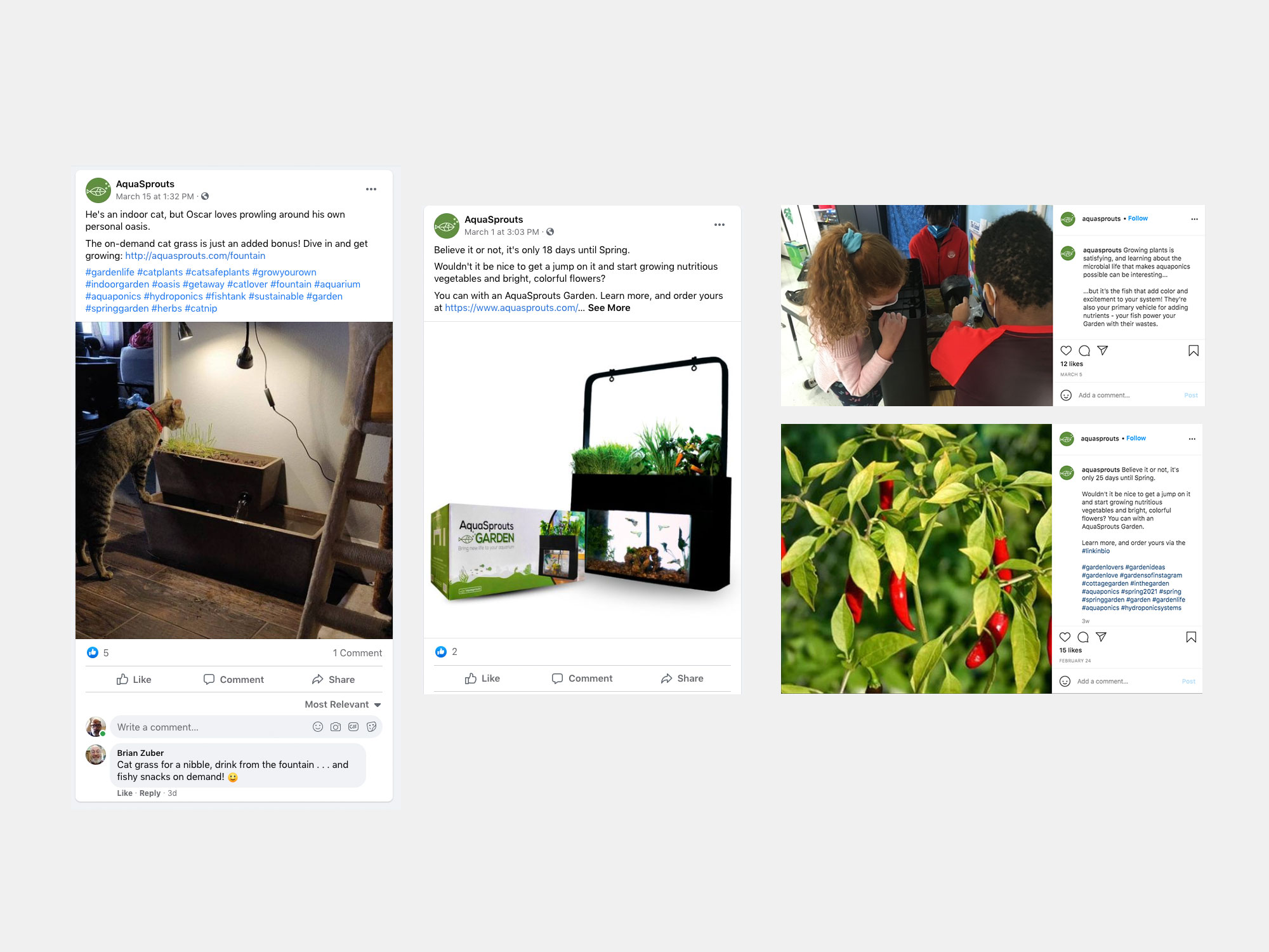 A good example of how this works is a current social media program our team is doing for a Texas-based company called AquaSprouts. This innovative brand brings the revolutionary principles of aquaponics farming into homes, offices, and classrooms through products that combine fishkeeping and hydroponic gardening. AquaSprouts’ typical audiences had been public educators, people with home aquariums, and/or people who enjoyed outdoor gardening.