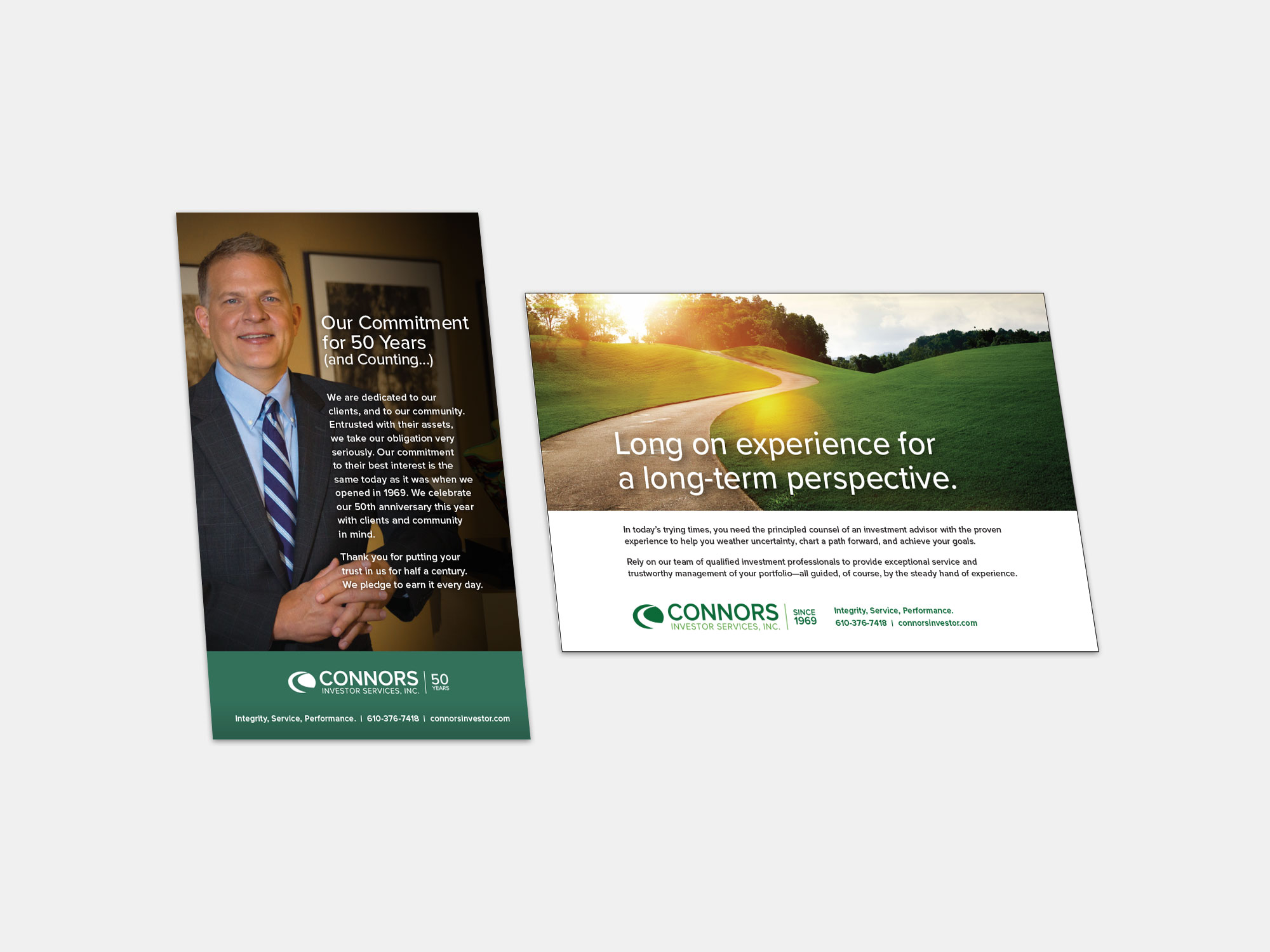 In 2019, Connors celebrated 50 years of serving their clients and the community. In commemoration, we not only introduced a new brand logo and identity system but also produced a 2-minute “Welcome” video featuring their president, Peter Connors, for their newly refreshed website.