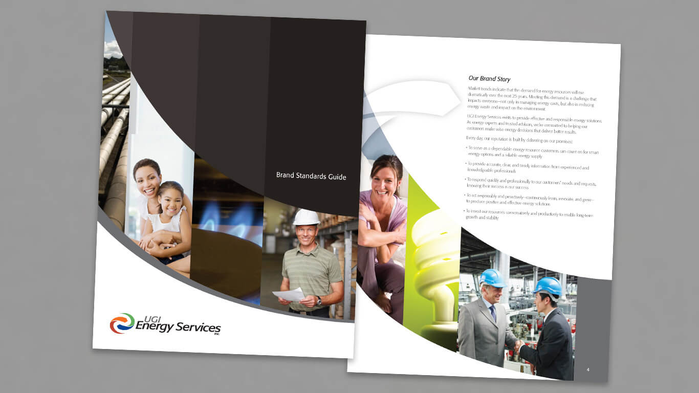 Our team also produced a comprehensive Brand Standards Guide, new graphic templates, a solution-tailored communications matrix, and internal communications to introduce the new look and system to internal staff and UGI Corporation.